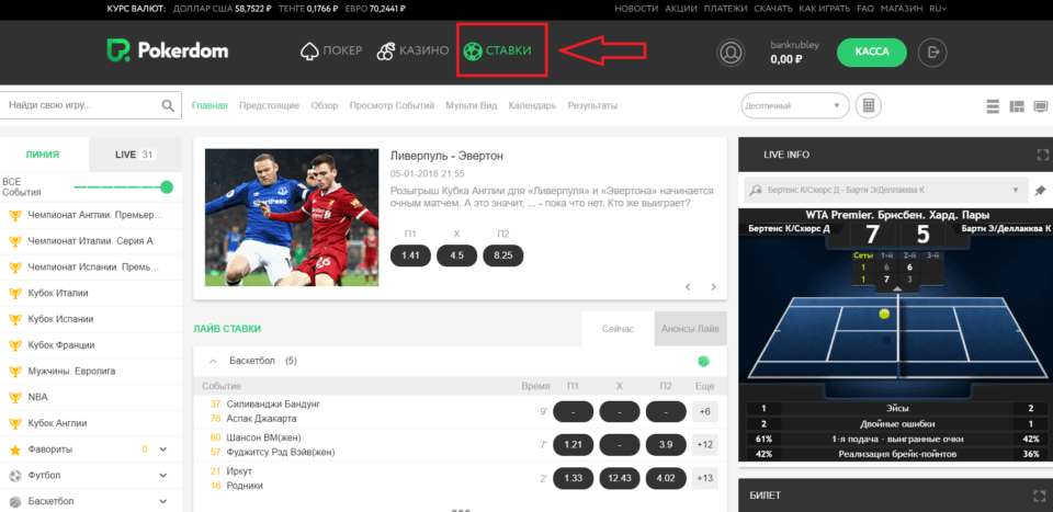 Беттинговая площадка доступна всем клиентам сайта ПокерДом. Чтобы приступить к спортивному прогнозированию, необходимо зарегистрироваться на ресурсе, верифицировать электронный почтовый ящик и пополнить счет. Это касается тех геймеров, которые не являются пользователями покер-рума или казино бренда.